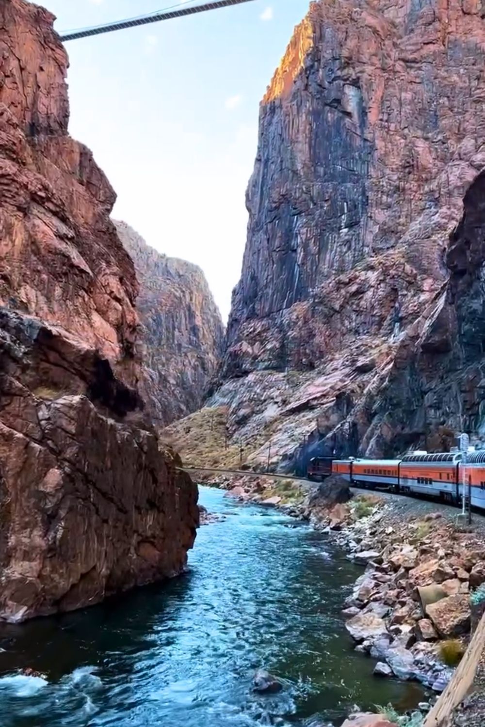 The Royal Gorge train ride typically lasts around 2 hours for a round trip. They offer daily trips with multiple time slots to choose from. During this time, you’ll have options to purchase Adult beverages, food, and you’ll see incredible scenery while getting a quick lesson on Colorado history along this historic route.