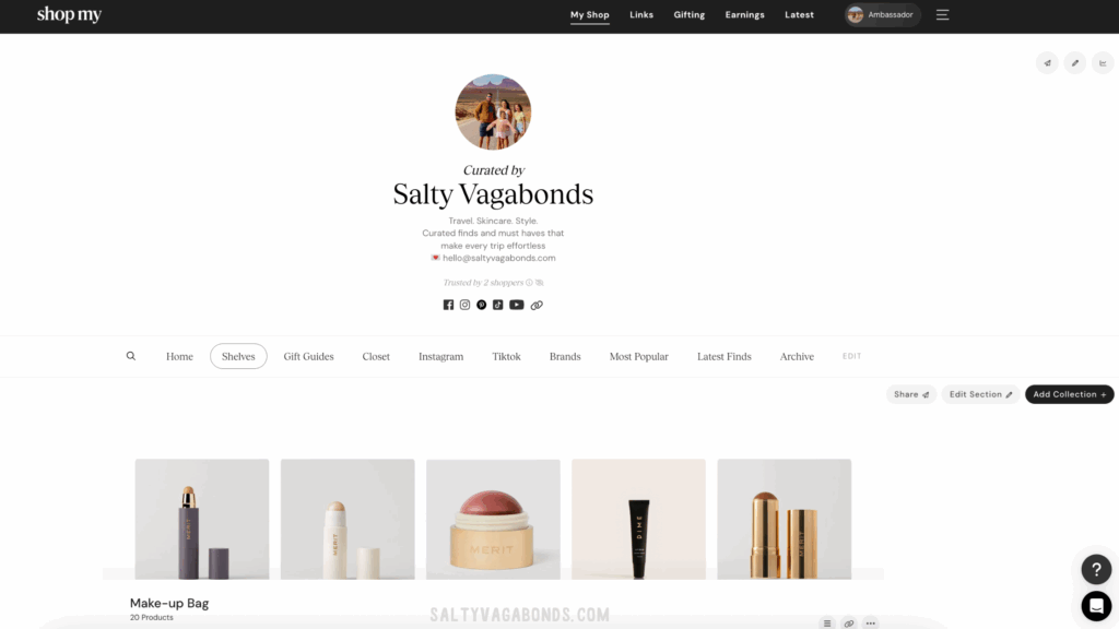 Here are a few screenshots of what my ShopMy store looks like! As well as what some of the other features/pages on ShopMy looks like.