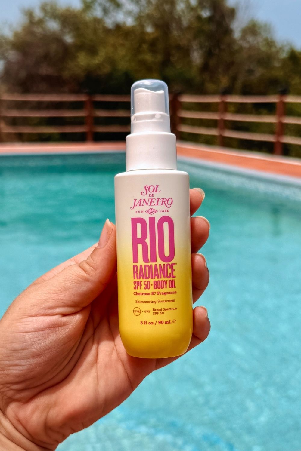 This oil-based sunscreen offers a shimmering finish and protects against both UVA and UVB rays. It’s reminiscent of the popular Hawaiian Tropic Dark Tanning Oil but with a unique scent. Packaged in a convenient 3-fluid ounce pump spray bottle, it’s TSA (Transportation Security Administration)-friendly for hassle-free travel on your next adventure in your carry-on bag.